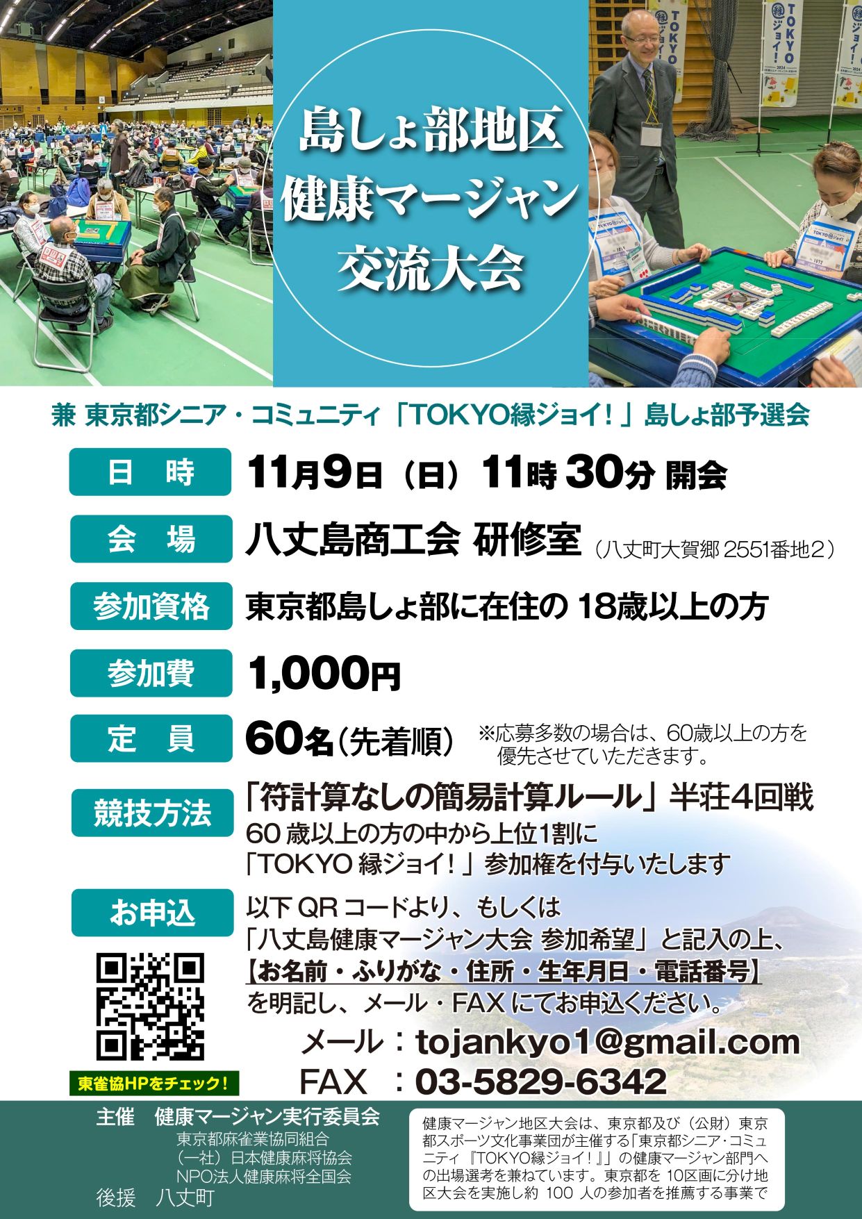 この度、八丈島での台風による被災の影響を受けまして、開催を予定しておりました「島しょ部健康マージャン交流大会」の開催を中止とさせていただきます。